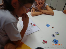 Eloísa, Vitória e Ana Júlia trabalhando com o jogo "percepção visual" (não lembro onde encontrei o jogo para dar os devidos créditos).